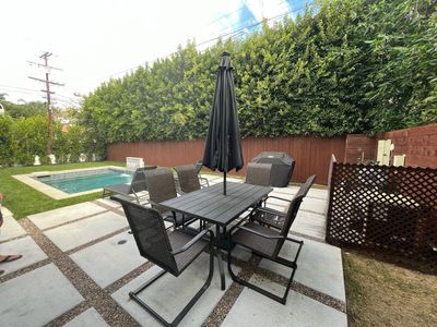 A rare opportunity to own two fully renovated homes on one of the largest parcels in Beverly Grove! Set behind privacy hedges, this exceptional property features two standalone residences, each with private entrances. Ideal for owner-occupants, multi-generational living, or investors. 542 N Kilkea Drive is a single-story Spanish-style home with cathedral ceilings, three spacious bedrooms, ensuite master bathroom, plus a second full bathroom. Inside, enjoy a bright open layout and warm, inviting living space ideal for both entertaining and everyday comfort. The front door opens to a private yard with lush landscaping and a newly poured patio - perfect for outdoor dining or quiet morning coffee. 8116 Clinton Street is a two-story home with two sizable bedrooms, ensuite master bathroom, plus two additional full bathrooms, and custom closets. Take in a view of the Hollywood Hills from the master bedroom, relax on the balcony and watch a beautiful California sunset, or take a seat in the entry courtyard and unwind under the canopy of the beautiful tree that serves as the center-piece to the home’s entrance. In the rear, take a dip in the newly built, fully heated saltwater pool with in-water barstools and a waterfall, surrounded by lush green lawn. A two-car garage serves the Clinton residence; the Kilkea residence features ample street parking. Both homes have been fully transformed, including electrical and plumbing systems, energy efficient windows, new kitchens, fully equipped with Samsung stainless steel appliances, central AC/heat and tankless water heaters, smart-home enabled, security suite, CCTV, and restored original hardwood flooring. Both homes are delivered vacant and are income-ready with high rental potential. Live in one, rent the other - or lease both and hold a premier dual-income asset in one of LA's most walkable zones. The Melrose Place Farmers Market, Melrose Trading Post, Grove, Beverly Center, and Fairfax District are within minutes. Don’t miss this one-of-a-kind property offering space, privacy, and flexibility.